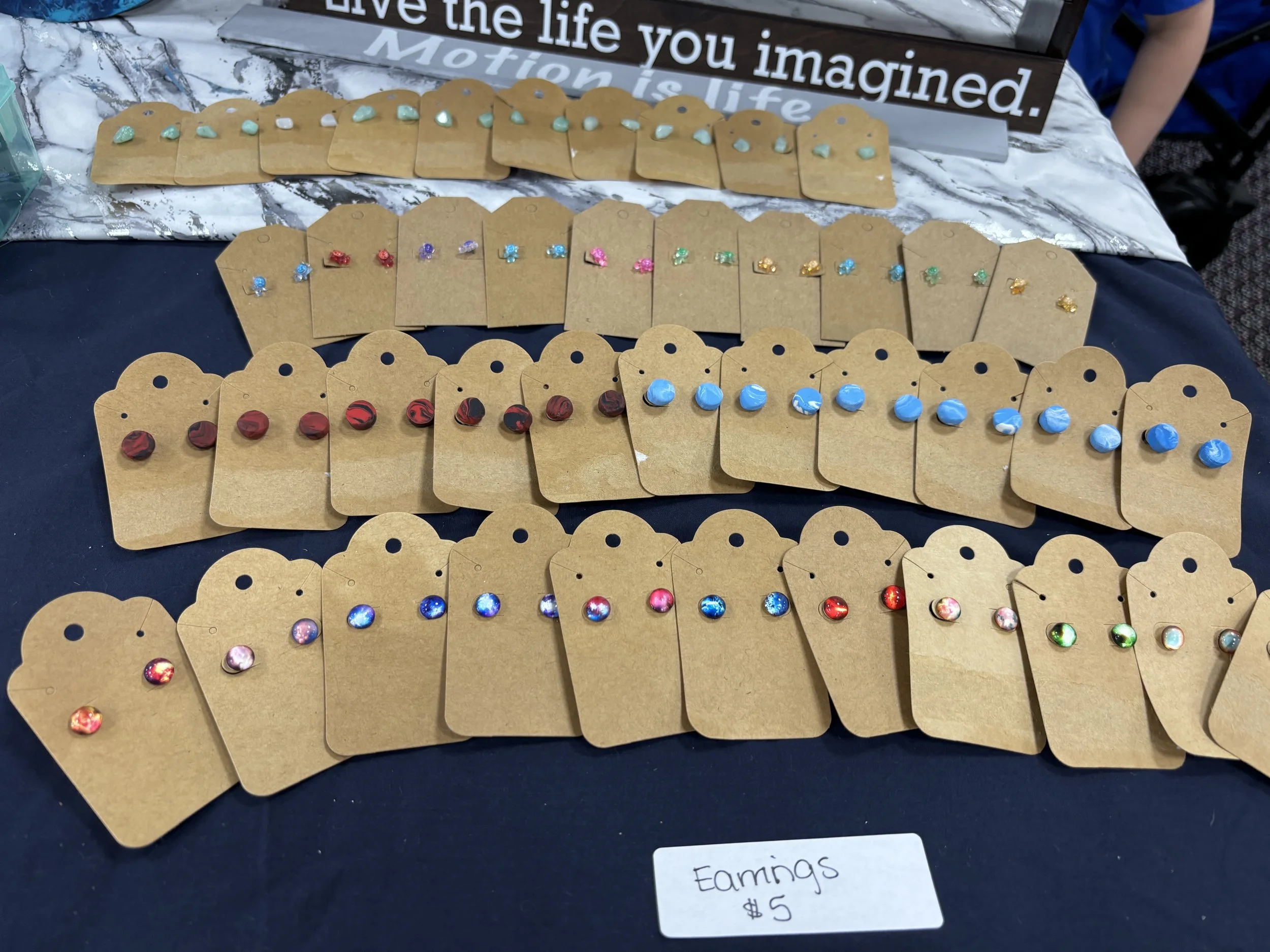 Content: Tiny turtles of assorted colors, celestial designs, marbled clay, and sea glass.